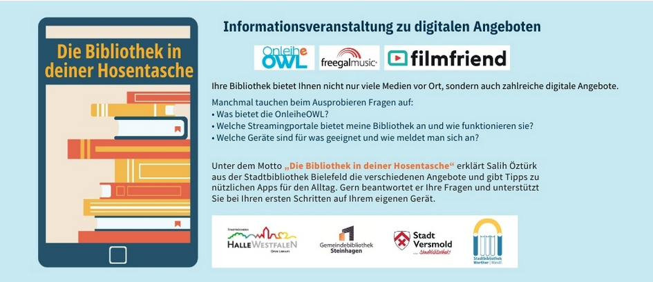 Die Stadtbücherei Halle, die Gemeindebibliothek Steinhagen, die Stadtbibliothek Versmold und die Stadtbibliothek Werther