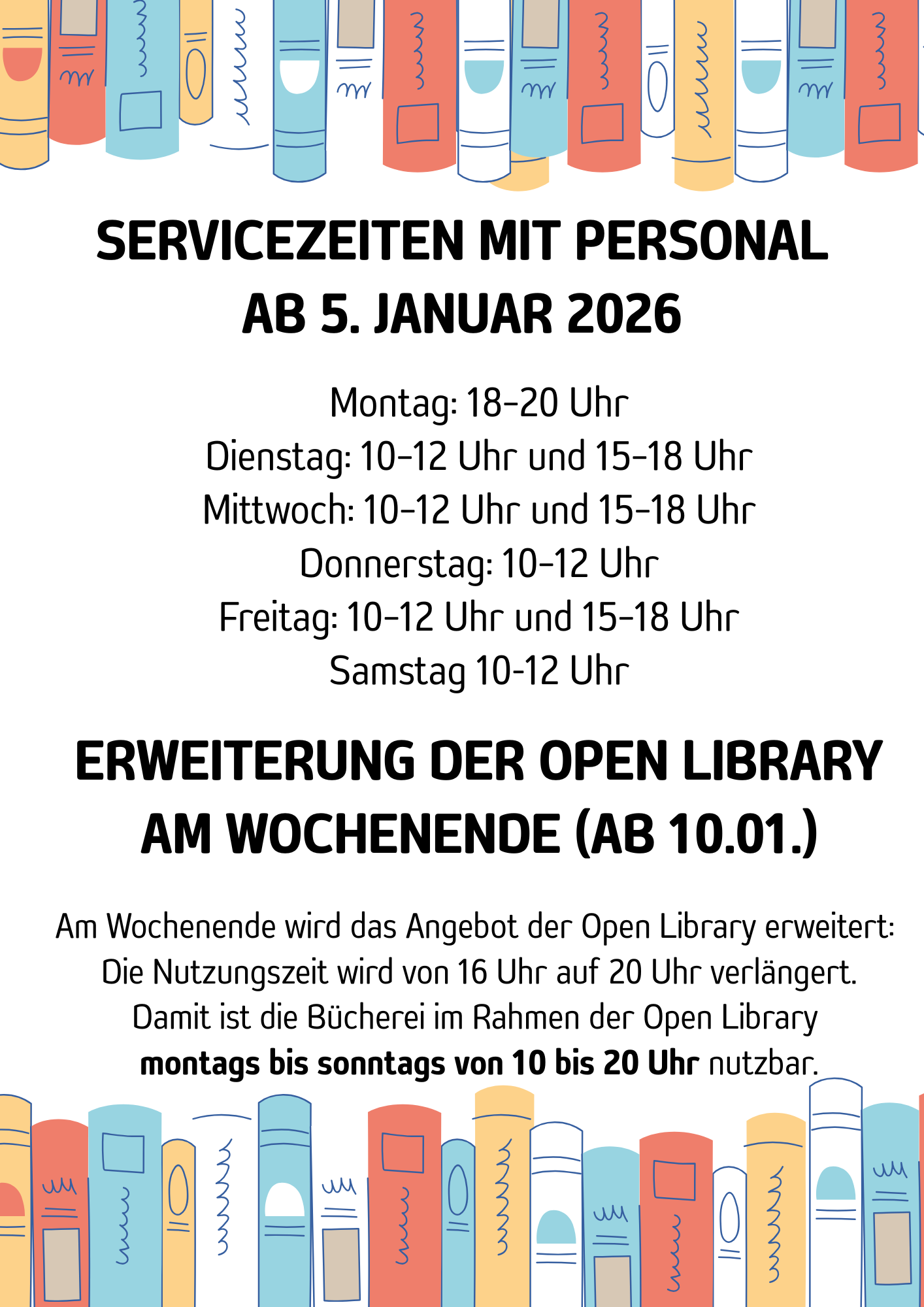 Ab dem 20. Februar 2025 gelten für die Stadtbücherei dann folgende Service- und Öffnungszeiten: